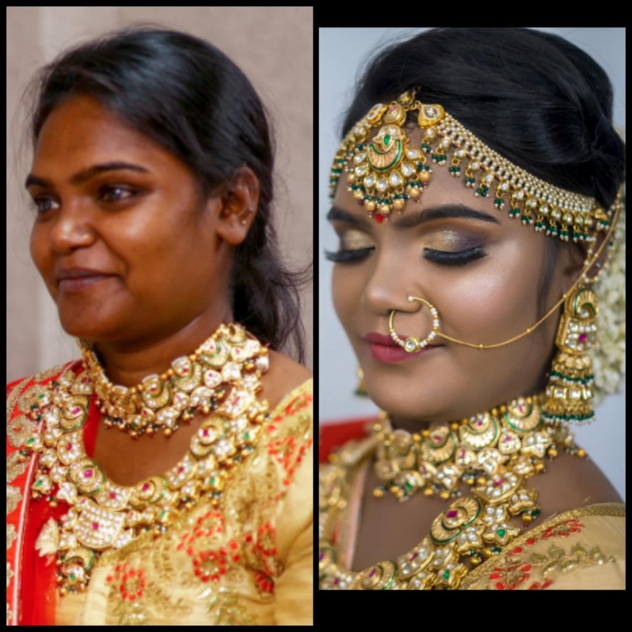 We are professional makeup artists. Bridal look is crafted by understanding the Bride’s skin type, texture and preference and we creates a look that is seamless and best suited for the occasion. When you look beautiful , you feel beautiful. Keeping in mind that all eyes are on the bride to be on her big day. We are known for the personal attention and the focus on the detailing for the perfect look of the bride. It will be our absolute pleasure to assist you in the best days of your life. Give us the privilege to for your Big day and we promise to make every moment special for you! # Bridal Makeup Artist , # bridal makeup , # wedding makeup, # Engagement Makeup , # wedding makeup artist , # bridal hair and makeup , # best bridal makeup