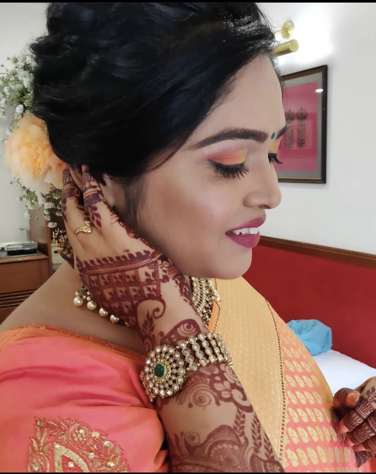 The bouquet of services offered by the makeup artist , makes them the one stop solution . they provide the following beauty services Bridal Makeup , Wedding MAKEUP , GUEST/FAMILY MAKEUP Indian bridal makeup Engagement Makeup Party Makeup HD Makeup Hair Styling.