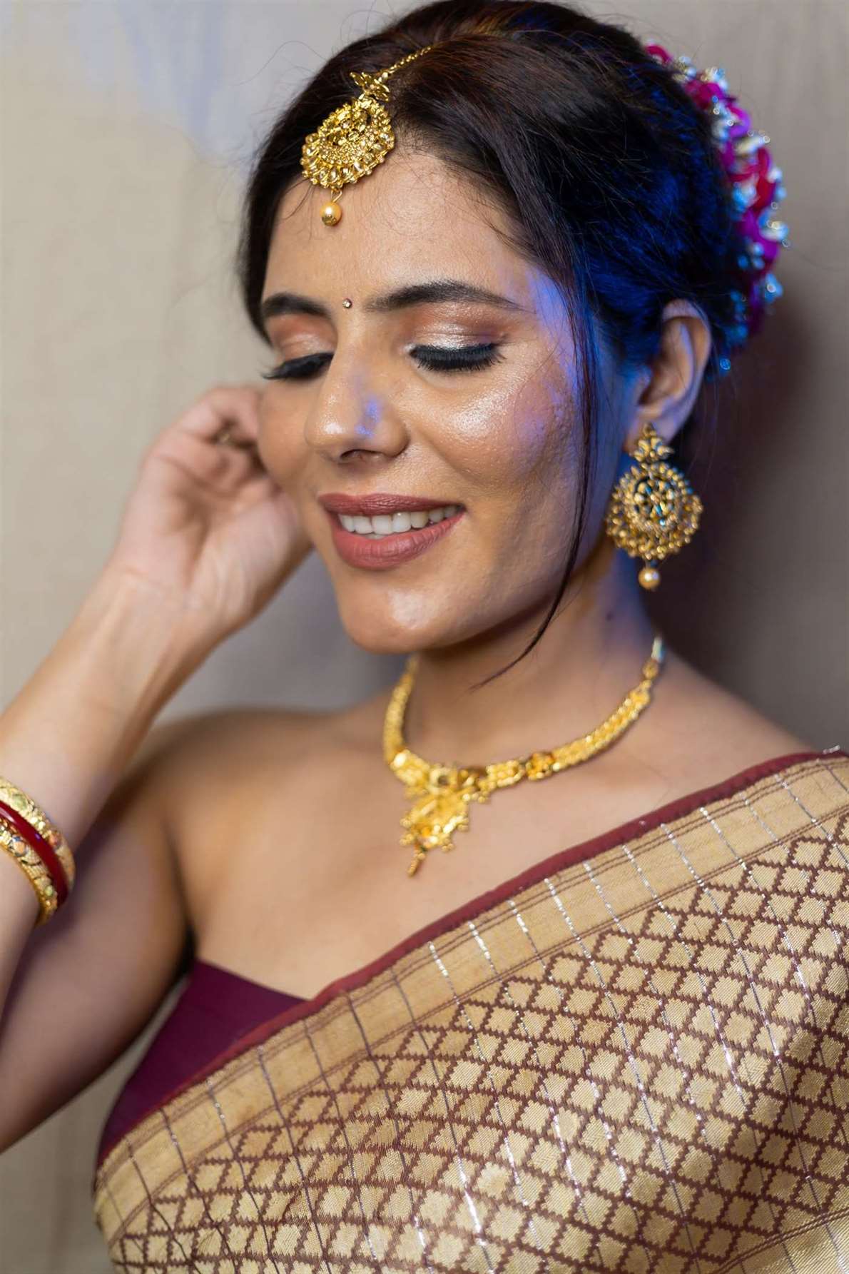We are professional makeup artists. Bridal look is crafted by understanding the Bride’s skin type, texture and preference and we creates a look that is seamless and best suited for the occasion. When you look beautiful , you feel beautiful. Keeping in mind that all eyes are on the bride to be on her big day. We are known for the personal attention and the focus on the detailing for the perfect look of the bride. It will be our absolute pleasure to assist you in the best days of your life. Give us the privilege to for your Big day and we promise to make every moment special for you! # Bridal Makeup Artist , # bridal makeup , # wedding makeup, # Engagement Makeup , # wedding makeup artist , # bridal hair and makeup , # best bridal makeup