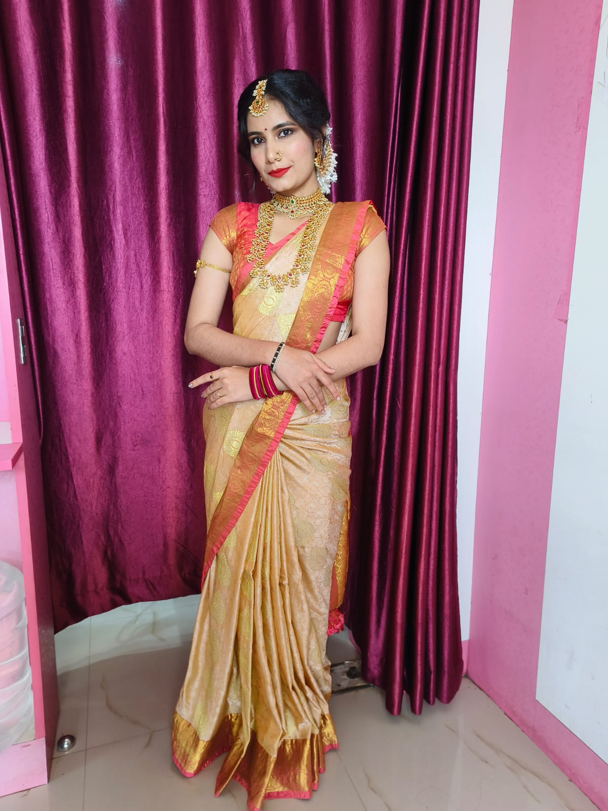 We are professional makeup artists. Bridal look is crafted by understanding the Bride’s skin type, texture and preference and we creates a look that is seamless and best suited for the occasion. When you look beautiful , you feel beautiful. Keeping in mind that all eyes are on the bride to be on her big day. We are known for the personal attention and the focus on the detailing for the perfect look of the bride. It will be our absolute pleasure to assist you in the best days of your life. Give us the privilege to for your Big day and we promise to make every moment special for you! # Bridal Makeup Artist , # bridal makeup , # wedding makeup, # Engagement Makeup , # wedding makeup artist , # bridal hair and makeup , # best bridal makeup
