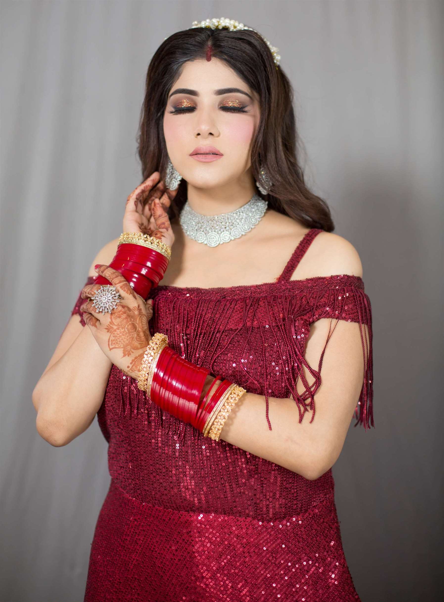 We are professional makeup artists. Bridal look is crafted by understanding the Bride’s skin type, texture and preference and we creates a look that is seamless and best suited for the occasion. When you look beautiful , you feel beautiful. Keeping in mind that all eyes are on the bride to be on her big day. We are known for the personal attention and the focus on the detailing for the perfect look of the bride. It will be our absolute pleasure to assist you in the best days of your life. Give us the privilege to for your Big day and we promise to make every moment special for you! # Bridal Makeup Artist , # bridal makeup , # wedding makeup, # Engagement Makeup , # wedding makeup artist , # bridal hair and makeup , # best bridal makeup